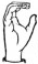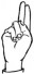 На ћирилици написано КОСТА КЛЕМЕНОВИЋ састоји се из 15 слова [?]. Исписано ћириличном једноручном азбуком за глувонеме: